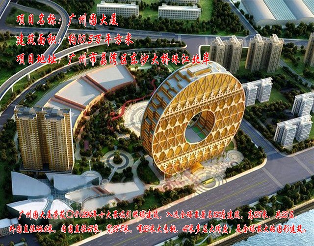广州圆大厦是由意大利人约瑟夫设计,荣获CNN2014年十大最吸引眼球建筑,入选全球最著名100座建筑,138米,共33层,外圆直径146.6米,内圆直径47米,宽28.8米,有23米大悬挑,47米多层大跨度,是全球最大的圆形建筑。